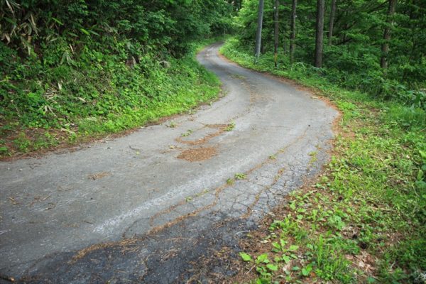 ここからゲレンデ跡地の中を縫うように走っている道(舗装路)しかも急坂を上らないといけません。不調の2台は厳しくて、何度か休み休み上がりました。