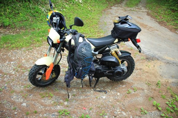 最後にこの急坂を何とか上り切ると、ちょっとした広場があってそこにバイクを停めます。