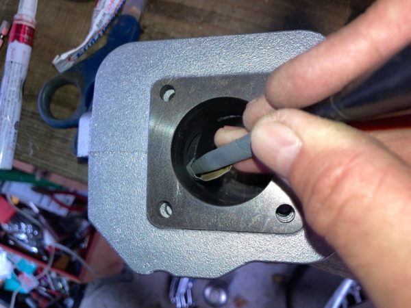 まずはシリンダーのポートを指で触ってみます。やはり引っかかりがあるため角を落とす必要があります。