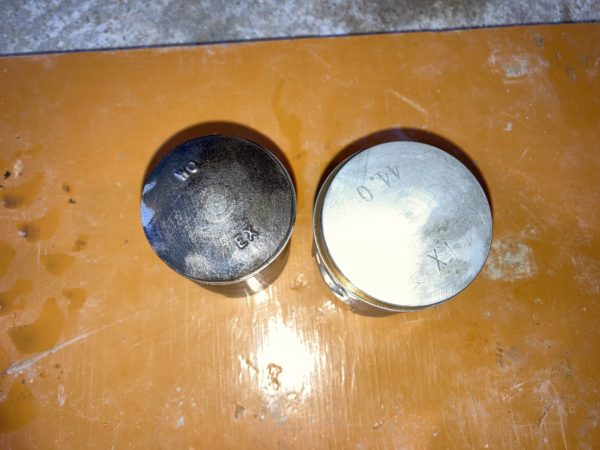 左の黒いのが39mmの50ccピストンで、右の新しいのが44mmの60ccピストンです。