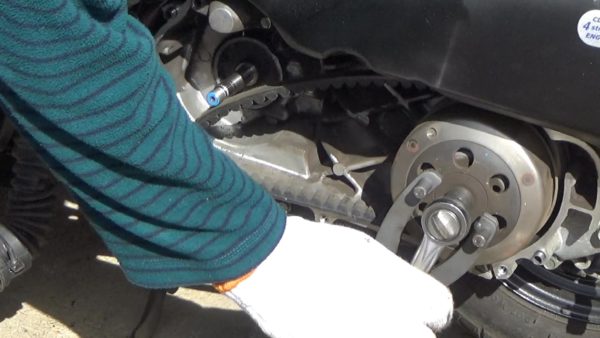 プーリーの表面はパーツクリーナーをしみ込ませたウエスで綺麗に拭いておきましょう。グリスが付いているとベルト滑りの原因になります。