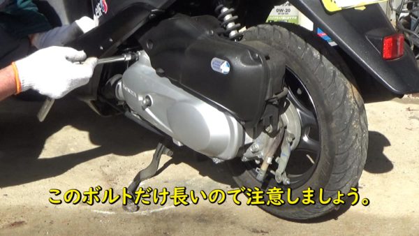 ボルトは全部で6本です。この部分のボルトだけは長いので注意しましょう。