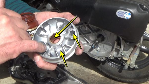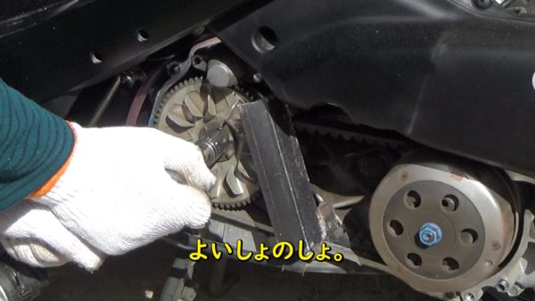 新しいハイスピードプーリーにベルハンマーゴールドのグリスを薄く薄く塗ります。