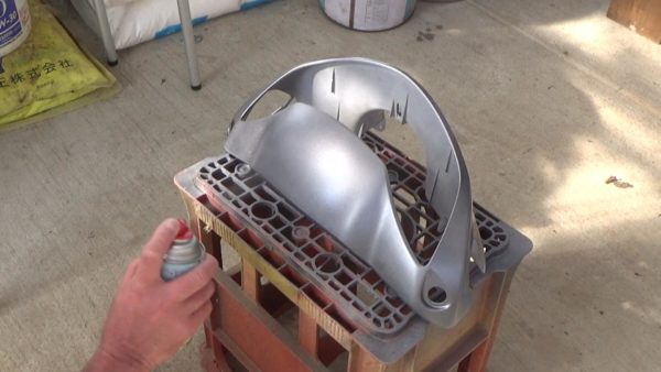このDioの外装はABS樹脂なので塗料の食いつきは良い方です。それでも油断できません。以前ABS樹脂にミッチャクロンを吹かずに塗装したところ、高圧洗浄機で剥がれてしまった苦い経験があります。