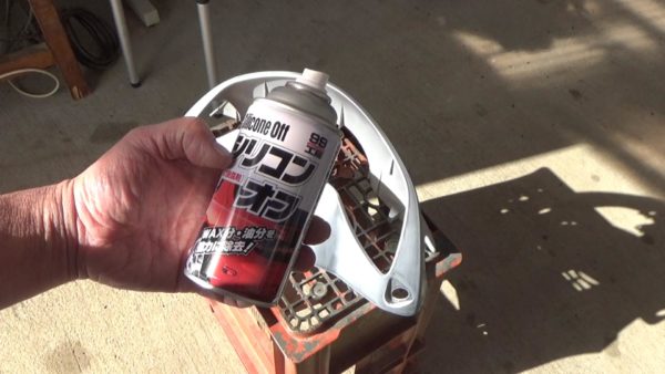使うのはシリコンオフです。シューッと吹いてから乾かないうちにきれいなウエスで拭き取ります。