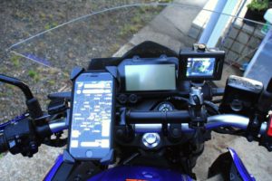 MT-03にハンドルバーを付けてスマホとアクションカメラを取付け