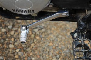 XTZ125のチェンジペダルって先端が固定式なのです。オフロードバイクなんだから可倒式じゃないとなあ。