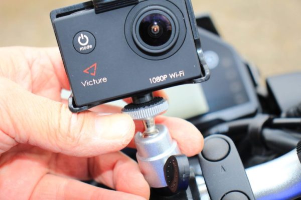 アクションカメラにも色々なマウントが付属していますが、このマウントを使えば少し高い位置に固定できますので、メーター越しに前方を映す事が出来ました。
