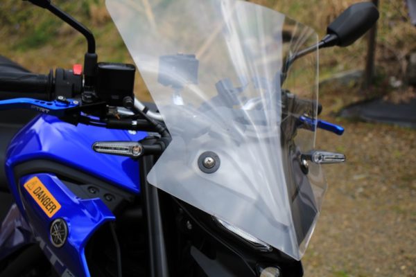 自分でメーターを見る事が出来ないと困りますが、ライディングポジションになってみるとギリギリメーターを見る事が出来ました。