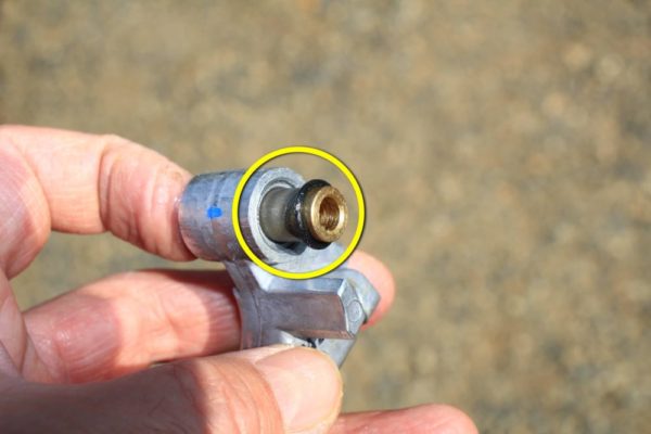 次に外した純正レバーから真鍮製のブシュとOリングを外します。(金色に光っているパーツとゴムのパーツ)