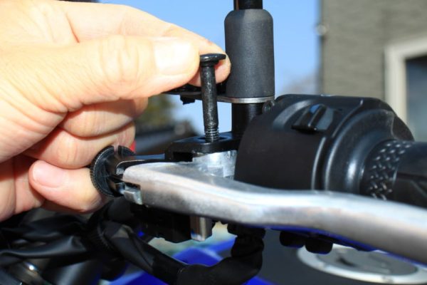 上からボルトを通してからナットを締め付ければクラッチレバーの交換は終了です。締め付けすぎない様にしましょう。クッと締める程度で大丈夫です。