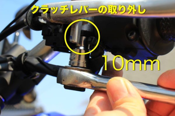クラッチレバーの取り外しに必要な工具は10mmのボックスレンチです。スパナだと回しにくいのでボックスレンチがあれば作業がはかどります。