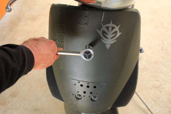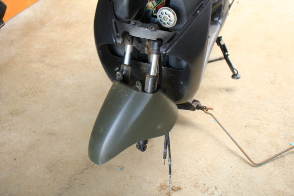 DioFitはフロントフェンダーが装備されていますので二本の固定ボルトを外して下に抜きます。