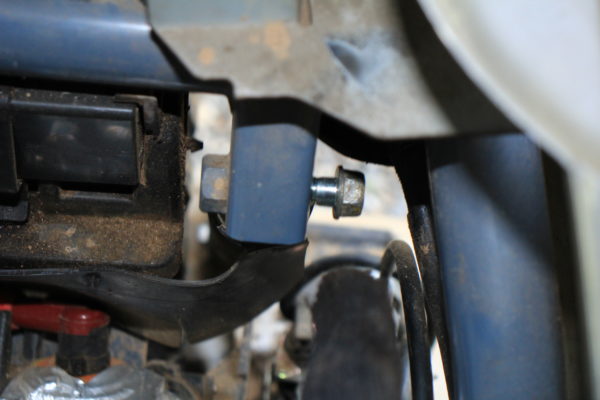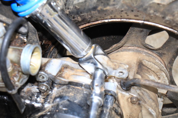 次にエアクリーナーを取り外します。サスペンションの下のボルトを外しましょう。12mmのボックスレンチがあると外しやすいです。