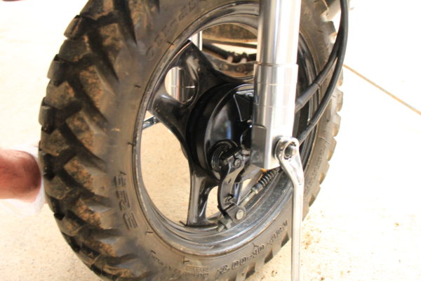 ブレーキドラムのへこみにこんな感じにフロントフォークの出っ張りがハマります。
