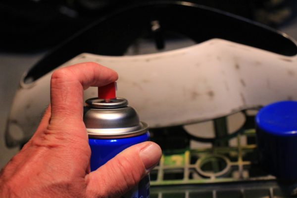 シリコンオフを拭き取った後、一旦乾燥させてからミッチャクロンを吹き付けます。昔はこれが無かったので塗装が剥がれやすかったのです。
