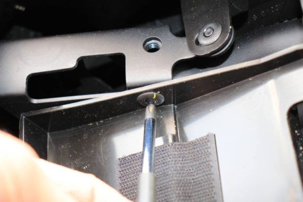 棚の両サイドにクリップがありますので、ドライバーでクリップの中心を押し込みます。