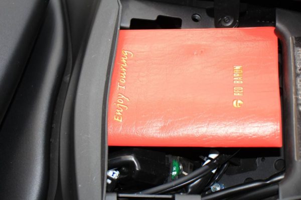 やれやれ、やっとこ書類が収まりました。ちなみにドライブレコーダーも収納する予定ですが、棚を外しておけば何とか収まりそうです。