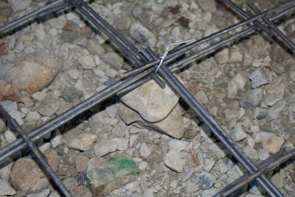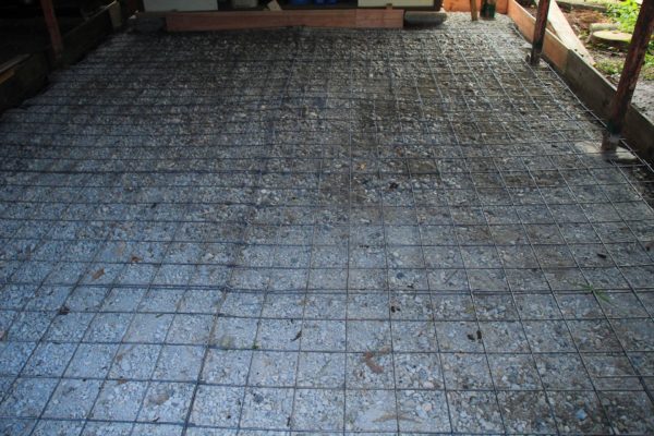 広い場所にコンクリートを打つと、どうしてもヒビが入ってしまうのです。ワイヤーメッシュを入れておけば割れて離れて大きな段差になってしまう事は避ける事が出来ます。