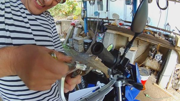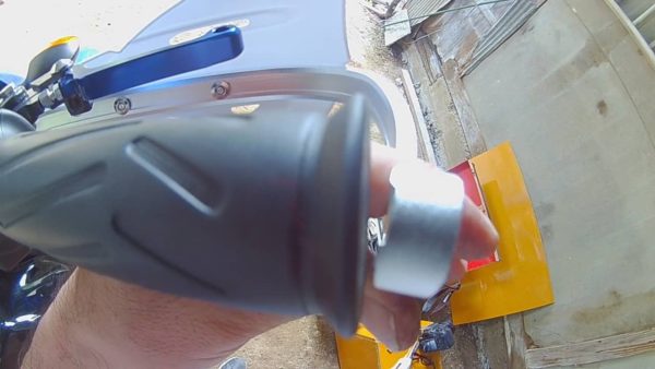 ハンドルの中に入って広がることで取付が出来る様になっているのですが、あらかじめプライヤーで挟んでおいてネジを締め、ギリギリまで広げておく必要があります。