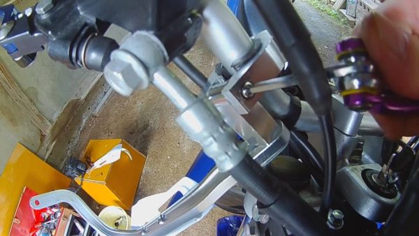 ハンドルに取付パーツを組みますが、まだキッチリ締め付けないで緩く取付けます。