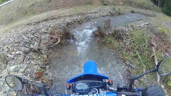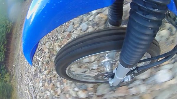 すごいですね。川の中も石ゴロゴロなのですが滑る様子がありません。水の中を進む抵抗は少し感じますが、アクセルを開けるとタイヤがついてきますし、フロントが滑ってあらぬ方向へ向かうこともありません。