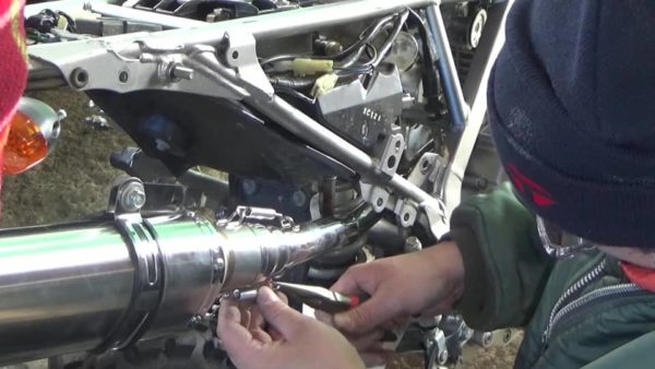 マフラーとパイプを接続してからバネを2本取り付けます。