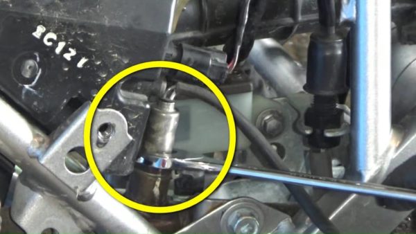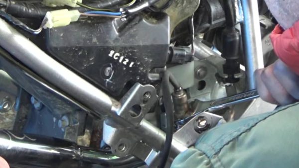 これでO2センサーの取り外しができます。ケーブルの元に付いているのがO2センサーです。これをスパナを使って緩めて外しましょう。
