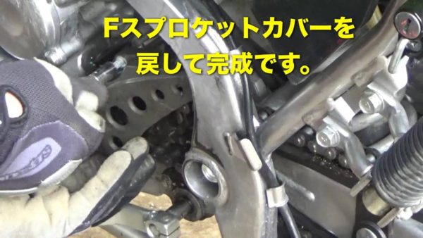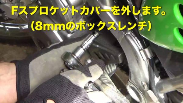 Fスプロケットカバーを外します。8mmのボックスレンチで外すと楽です。