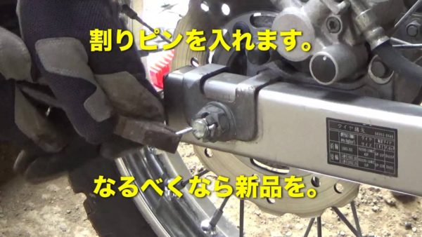 割りピンはなるべく新品を使いましょう。手元になければ仕方ありませんので先ほど外した物を使いますが、早めに新しい物に交換しましょう。