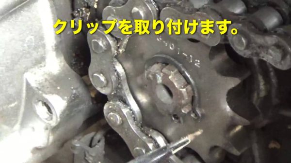 スプロケットが奥まで入ったらクリップをはめて固定します。
