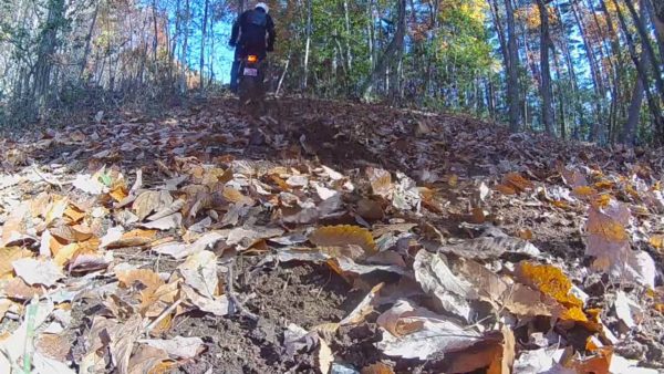 林間コースなんて「乾いていて最高の条件」なんて事はめったにありません。突然水が染み出していたり、葉っぱの下がガレていたり、落ち葉でフカフカだったりと酷いものです。