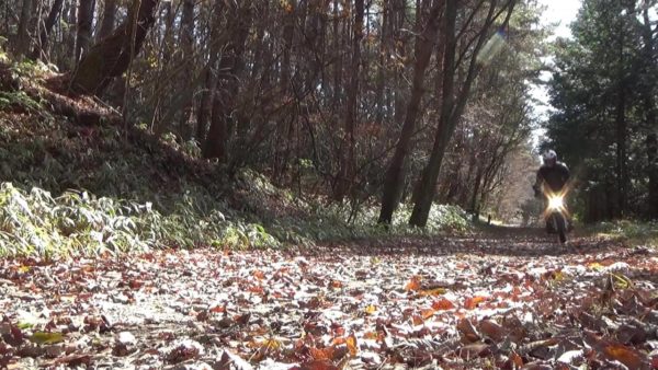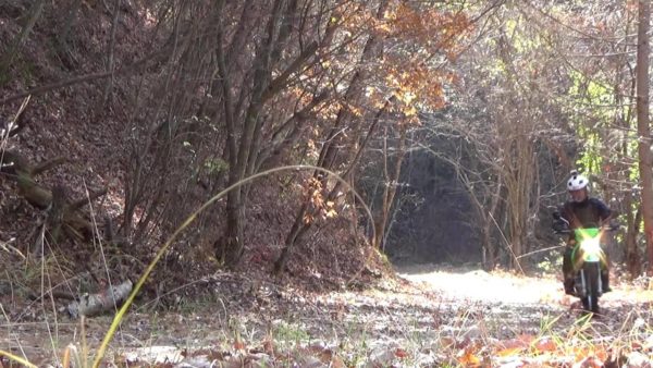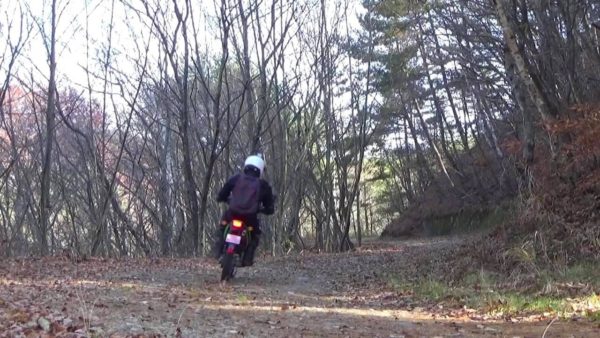 いよいよ林道走行開始です。フロントスプロケット12Tのおかげでとてもスムーズな発進ができます。