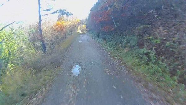 右に左に続くフラット林道のコーナーは楽しいひと時ですね。