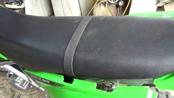 次にシートに付いているベルトを外します。軽量化と言う意味では大きな効果はありませんが、お尻を移動するときに邪魔との事なので外します。