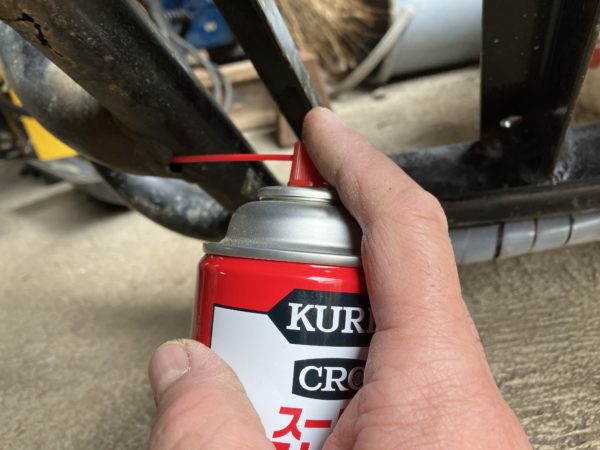 フレーム下部には水抜き用の穴が開いていますのでそこからスプレーする訳です。