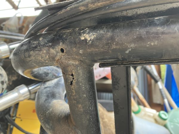 それにしても、フレームの一部が錆びて穴が開いてしまっていますね。比較的状態の良いフレームを選んだのですが、もう製造から30年近く経過しているため仕方ありません。