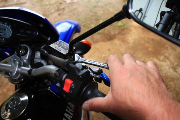 クラッチ側と取り付け方は同じです。ますは純正ミラーを取り外しましょう。