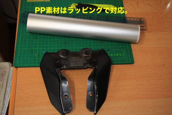 PP素材にはラッピングシートで対応しましたが、あまり複雑な形だと処理できません。