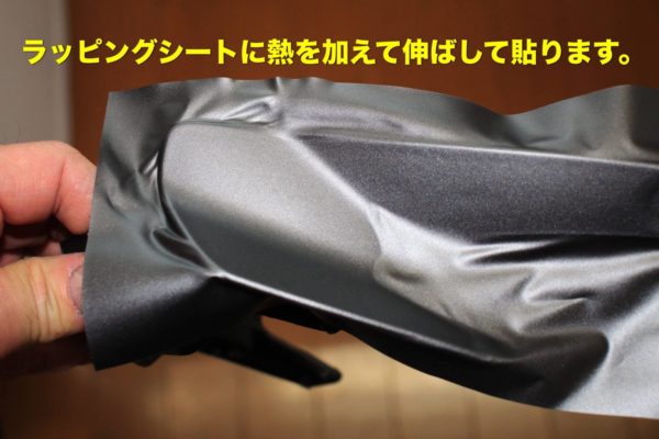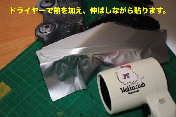 ここはガンメタのラッピングシートをドライヤーの熱で伸ばしながら貼り付けます。