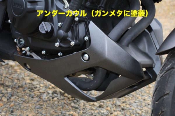 アンダーカウルも黒樹脂むき出しだと安っぽくていけません。ガンメタに塗装しました。