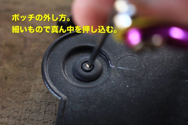 ボッチの真ん中を細い棒で押し込むと外れます。