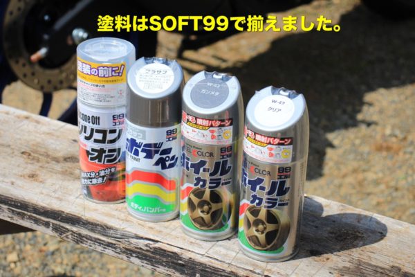 今回使ったSOFT99のホイールペイントはとても食いつきが良い塗料なのでプラサフは使わず吹き付けました。