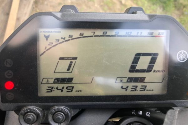 今の時代だからバイクだって燃費性能は大事ですね。ど新車の時に30km/L位だった平均燃費(燃費計表示)ですが、慣らし運転も後半に入った頃43km/Lと表示されています。まだ慣らし終わってないしエンジンオイルも交換してないのに。