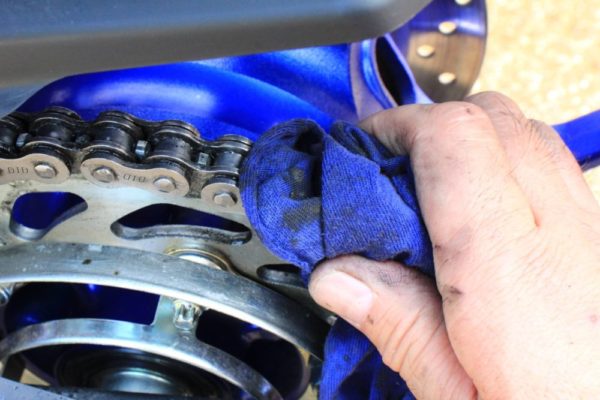 付き過ぎたチェーンルブはウエスで拭き取っておきましょう。