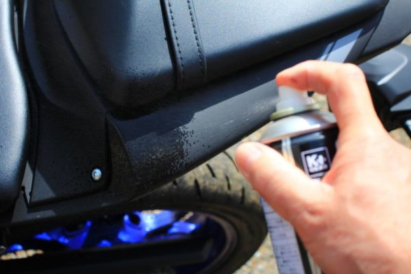 表面の脂分や汚れを落としてから貼るのですが、今回はパーツクリーナーを吹いた後、綺麗に拭いてから貼りました。