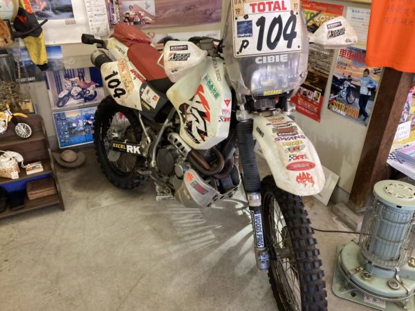カフェの奥に居るこのマシンは礼子さんがパリダカで走っていた時の本物のマシンです。XRですね。すごいですよ。隅々まで見入ってしまいます。