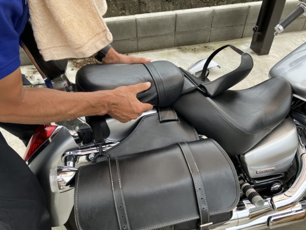 タンデムシートを少し上に持ち上げる様にして後ろに引っ張ればシートが外れます。