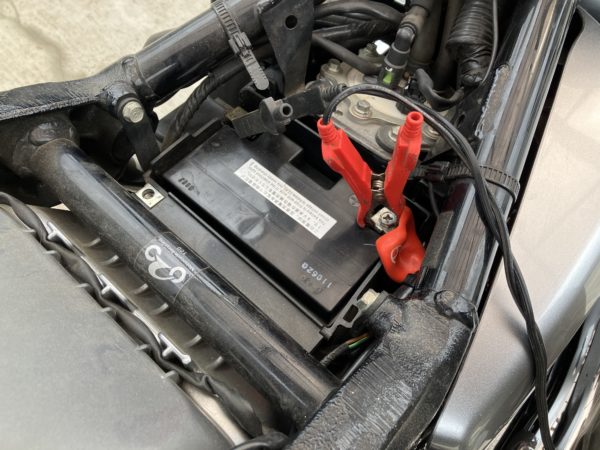 充電器を取りはずしてセルを回したらあっけなくエンジン始動が完了しました。