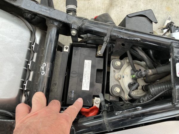 始動が完了した後、エンジンはかけっぱなしでシートを戻し、しばらく乗り回してバッテリーに電力を蓄えないといけません。すぐにエンジンを止めたら。電力が充分に蓄えられていない場合はセルが回りません。また最初からやり直しです。
